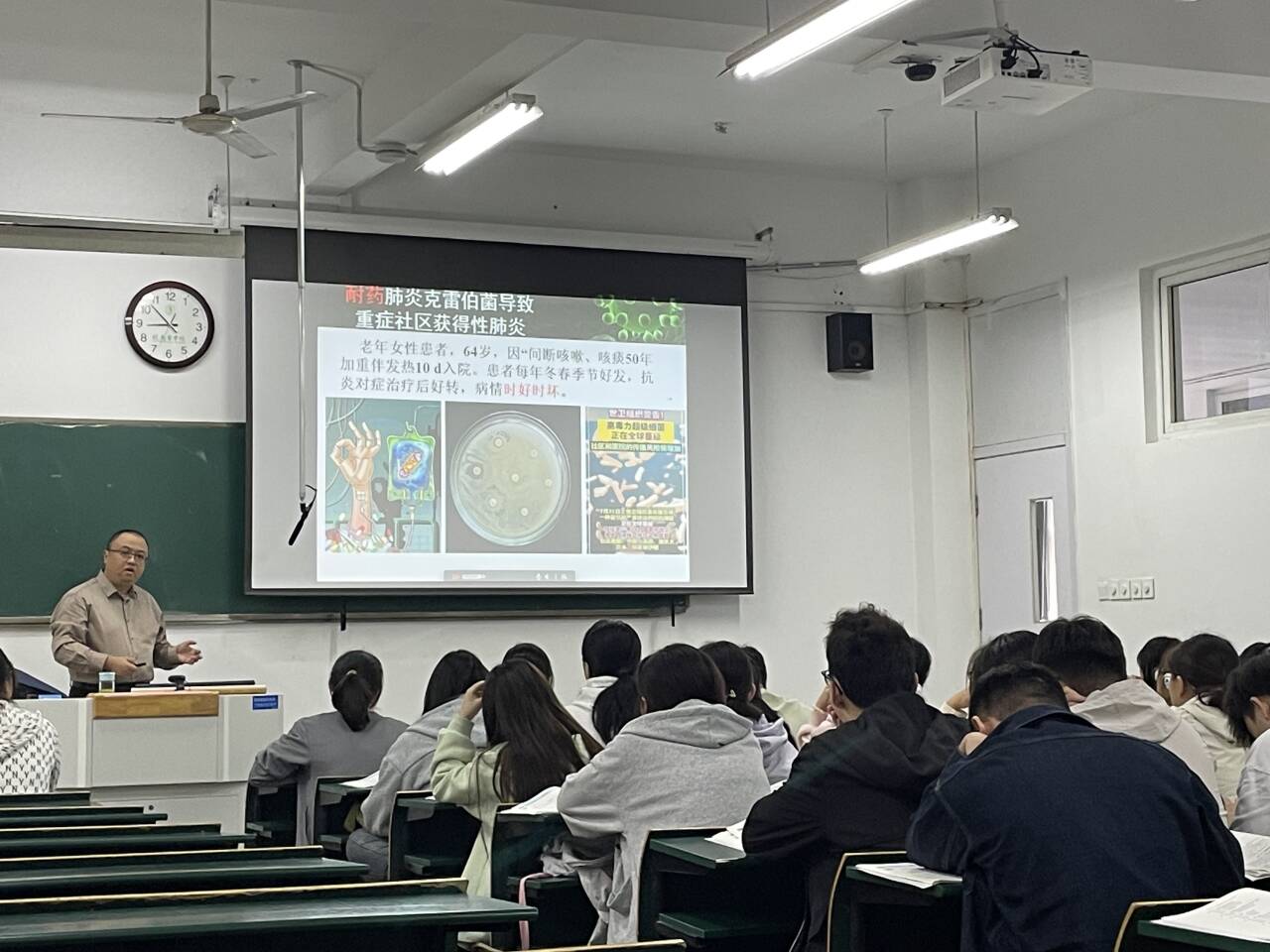 本次公开课以《病原生物学》中的“噬菌体”为核心内容。孙恩涛教授凭借其扎实的专业功底与丰富的教学经验,以精练的语言、清晰的逻辑和生动的案例,系统阐述了噬菌体的概念、形态结构和组成、主要类型及其实际应用。整堂课结构严谨、脉络清晰,他更以噬菌体的生物学特征为切入点,巧妙引导员工辩证思考“假溶原性”等科学现象,并通过噬菌体治疗耐药菌的案例自然引出课程思政元素,深刻阐释了严谨求实、探索创新的科学精神,极大地增强了课程的现实启发性与育人实效。课堂内容充实、重点突出,师生互动积极,气氛热烈,充分展现了主讲教师对学科知识的深刻理解与娴熟的教学驾驭能力,有效激发了员工的学习兴趣与内在动力。