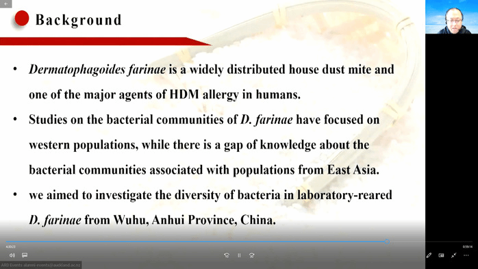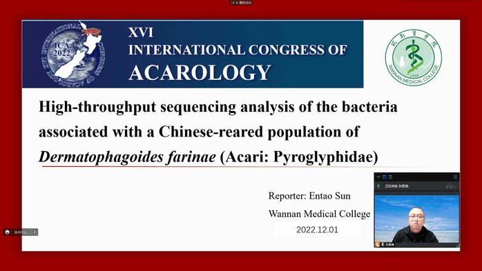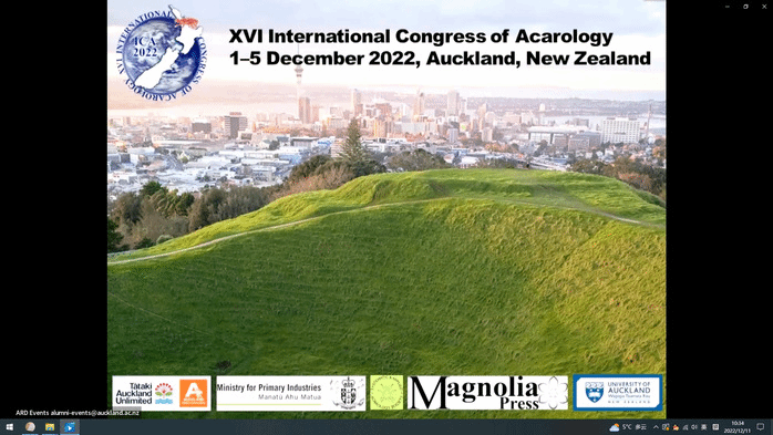 应第16届国际蜱螨学大会(The XVI International Congress of Acarology 2022,ICA 2022)会议主席ZHI-QIANG教授的邀请,英国365集团官网孙恩涛教授和2019级卫生检验与检疫专业本科生方颖同学参加了2022年12月1-5日在新西兰奥克兰举行的第16届国际蜱螨学大会。本次大会以“acarological frontiers”为主题展示了自2018年第十五届国际蜱螨学会议以来蜱螨学科所取得的成果,为世界各地的蜱螨工作者提供了一个相互交流和学习的平台。为积极响应国家防疫政策,会议全程在线上进行。