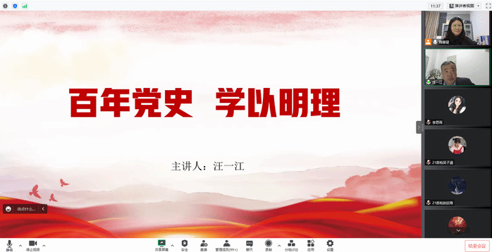 为深入学习贯彻党的二十大精神,进一步强化理论武装,常态化长效化开展党史学习教育,3月22日晚,公司邀请校关工委“五老”报告团成员汪一江教授通过腾讯会议作党史专题讲座,公司师生党员、发展对象、积极分子近200人在线聆听。